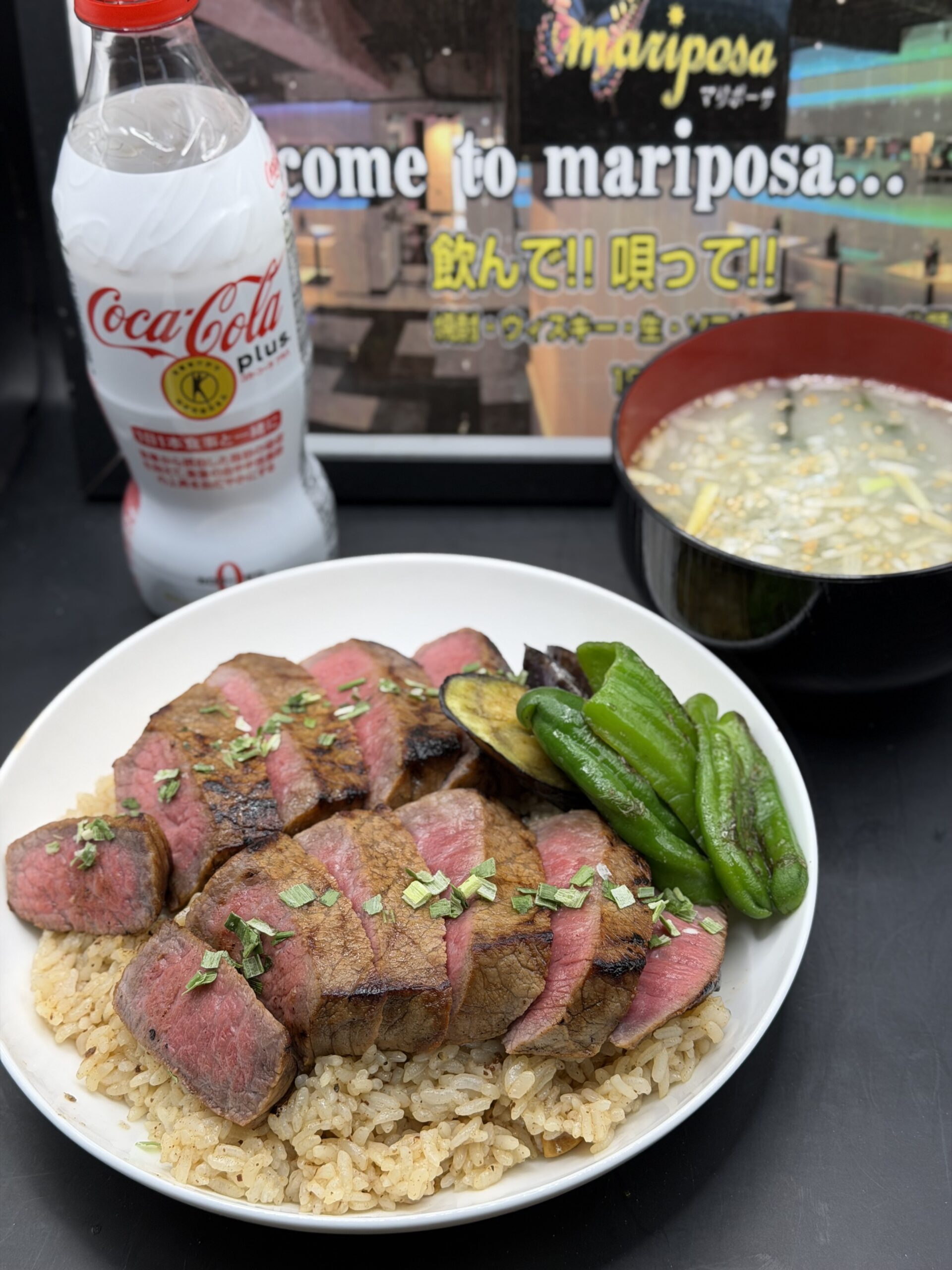 ガーリックピラフにステーキをドーンと乗せて頂きます👍