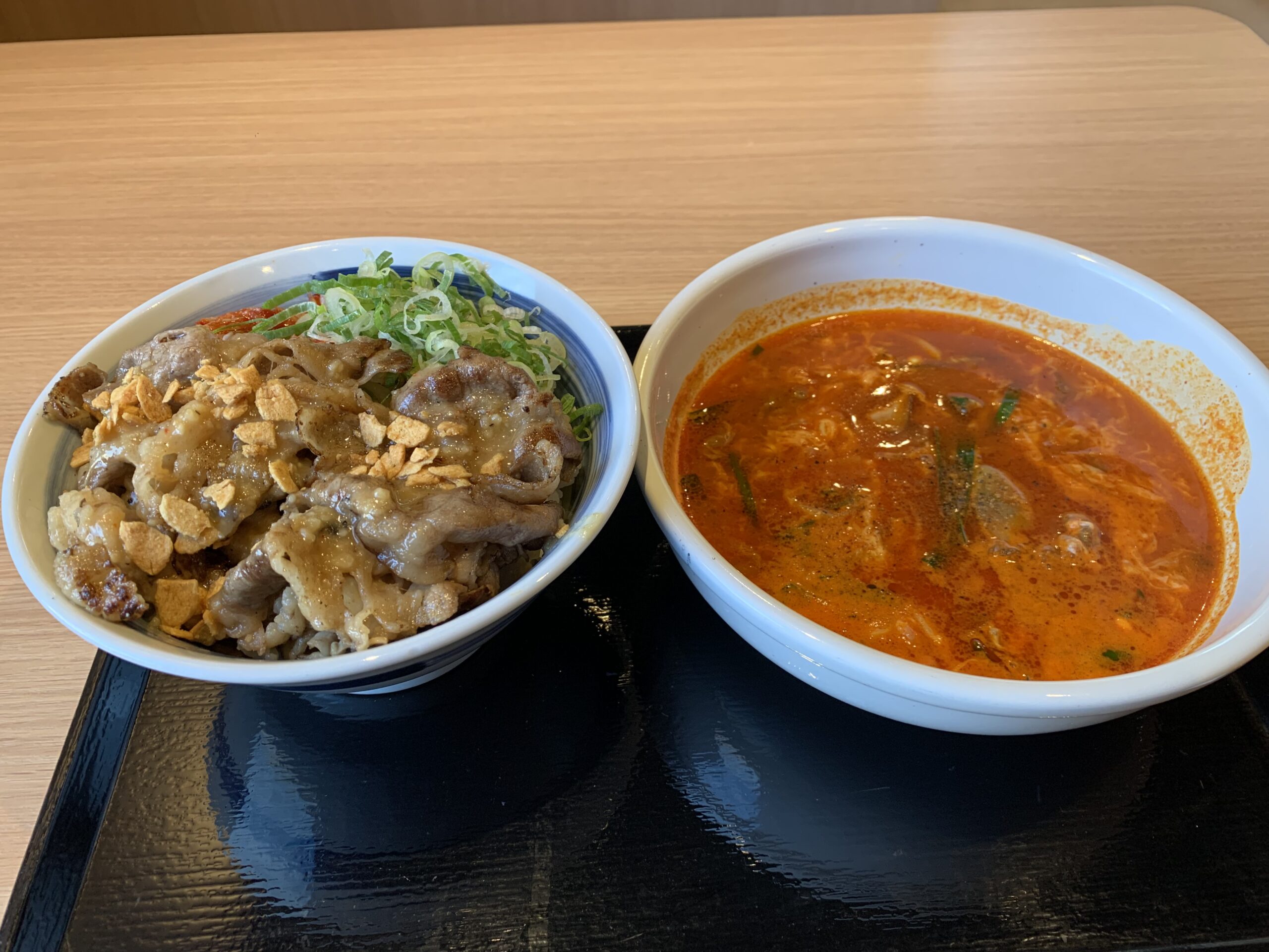 カルビ丼とユッケジャンスープにしました😋