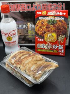 今日のご飯は麻辣赤炒飯と珍来さんの餃子です😋